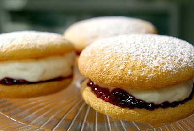 While Petit Fours got the call last year, this year I made darling Powder Puffs! Petite sponge-like cakes that hug sweet fillings like red plum jam and vanilla bean whipped cream.