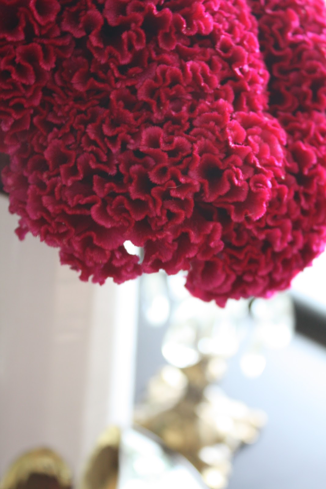 This single stem of bold magenta Celosia was sufficient enough for my vase sans any foliage!