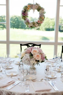 The third centerpiece design was a tall candelabra, hosting graceful, long, thin taper candles and petite vases of coordinating blooms below. I am absolutely mad about the elegant, residential look of their ceilings!