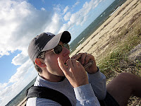 Once we hit Siaconset beach {10+ miles later} and found the perfect overturned rowboat to act as our picnic respite, it was time to sample the natural/organic creations the early shift at The Green put together for us. My multigrain wrap was stuffed with tuna, veggies, spinach and brown rice. To say it was fresh would be a massive understatement…it was the perfect fuel I needed. J’s chicken salad wrap must have also been noteworthy because before I could ask how it was…it was gone!