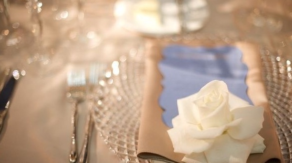 The tables were set with elegant charger plates, framing the rose-accented menus. {Love the di-cut silhouette of the card!}