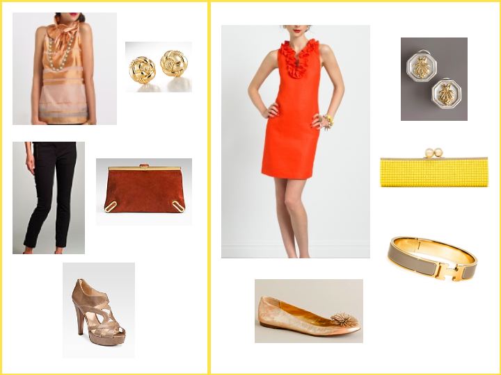 -Surprise, surprise – we’ve got a bold orangey red Kate Spade dress as the start to it all off…{will I ever tire of this color?!}